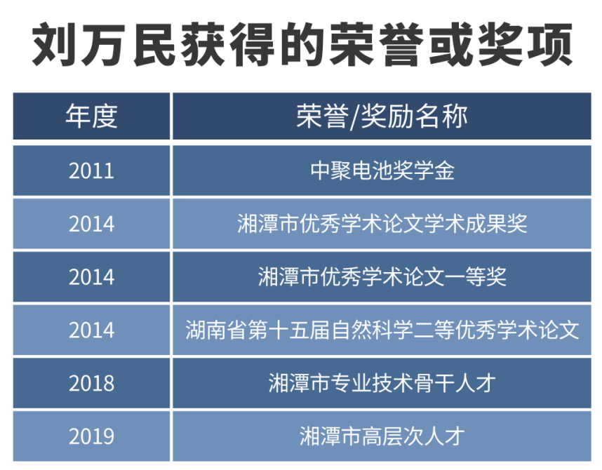 人物名片:刘万民,男,中共党员,博士,博士后,副教授,硕士生导师,Aalborg University(丹麦)国家公派访问学者,湖南省普通高校青年骨干教师,中国创新创业大赛评审专家,湖南省、江西省科技专家库专家,湖南省科技咨询与评审专家,湖南省自然科学基金评审专家,湖南省高新技术企业认定评审专家,湖南省技术标准创新促进会专家委员会专家,湖南省电源标准化技术委员会首届委员,湘潭市科学技术局与知识产权局科技专家,湘潭市科技创新智库专家,湘潭市科技特派专家,湘潭市专业技术骨干人才,湘潭市高层次人才D类(高级)人才,tyc33455cc化学学科学术带头人、材料工程系系主任,“环境催化与废弃物再生化”湖南省重点实验室与“环境功能材料与污染控制”湖南省高等公司科技创新团队核心成员,湖南灿溪新材料有限公司技术总监,Journal of Power Sources、Electrochimica Acta、Journal of Alloys and Compounds等国际权威期刊审稿人。